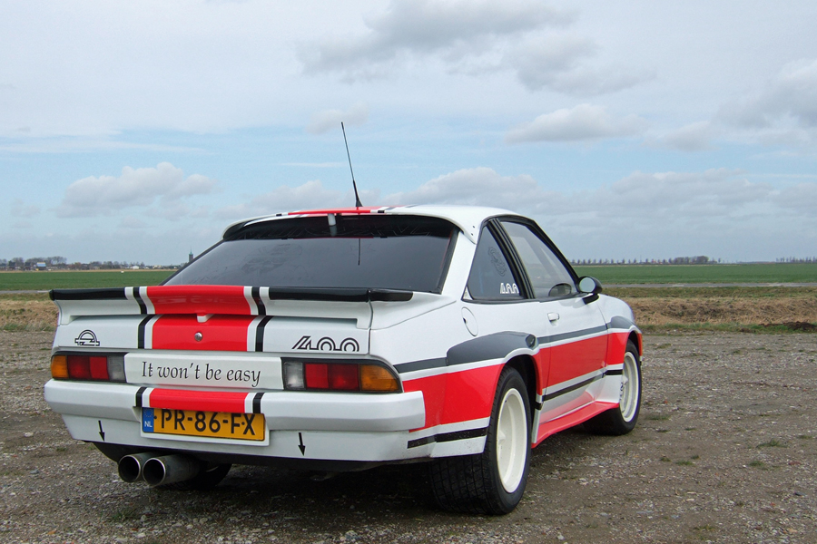 Zescilinder motor, vijf versnellingen, 40% sperdifferentieël, 5-gaats onderstel met de echte “400” wielen. Verder ook de Opel Motorsport stoelen en een volledige rollbar. Het onderstel is voorzien van gele Koni schokdempers, PU-bussen in alle draagarmen en veren speciaal geschikt voor de zescilindermotor. (Zie ook artikel Opel Manta Club).